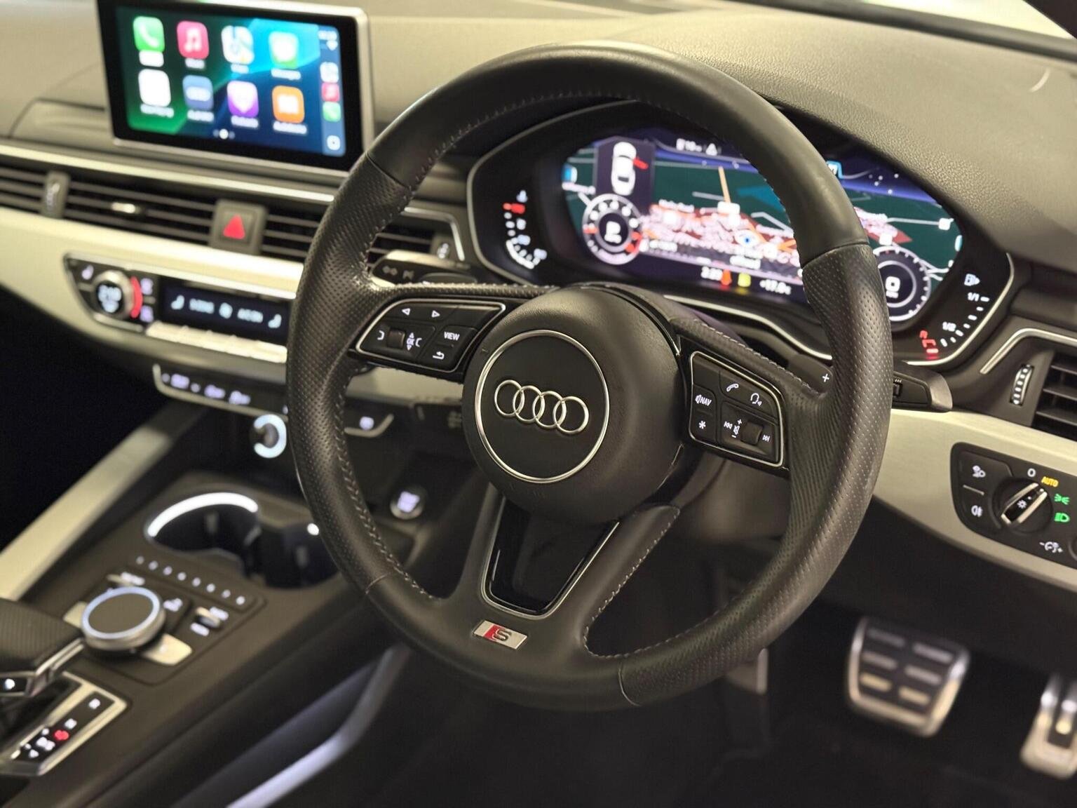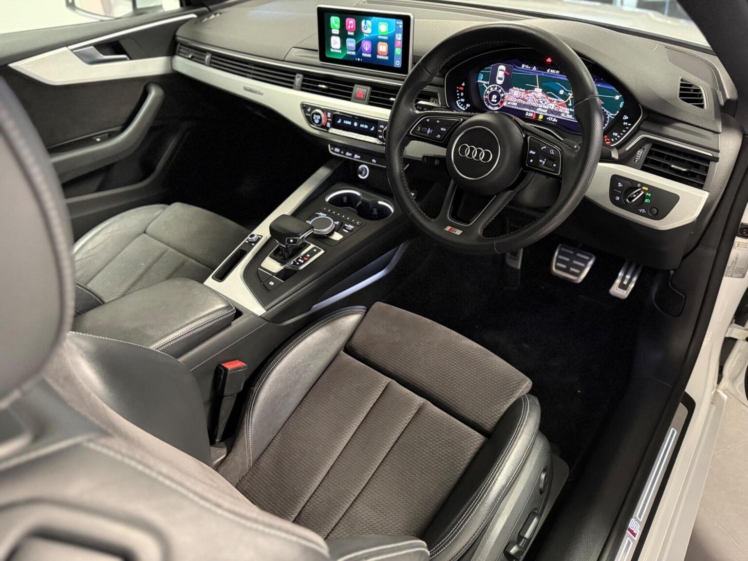 18in Alloy Wheels - 5-Twin-Spoke Star Design, 2 x SDXC Card Readers, 2 x USB Charging Ports and 1 x AUX-IN, 4-Way Electric Lumbar Support, 6-Airbag System, Air Inlets - Horizontal Inlay in Matt Aluminium, Anti Theft Locking Wheel Bolts, Anti-Theft Alarm, Audi Connect Infotainment Services - 3 Month Trial, Audi Connect Safety and Service - e-call, Audi Drive Select, Audi Smartphone Interface, Audi Sound System, Auto-Dimming Rear-View Mirror, Bluetooth Interface, Body Coloured Door Mirrors, CD Drive, Chrome-Plated Exhaust Trim, Cloth Headlining in Black, Contrast Stitching on Seats - Steering Wheel and Gear Lever Gaiter, Cruise Control with Speed Limiter, DAB Digital Radio Reception, Deluxe 3-Zone Electronic Climate Control, Door Mirrors - Electrically Adjustable and Heated with Built-in LED Indicators, Driver Information System - 7in Colour Display, Driver and Front Passenger Airbag with Front Passenger Airbag Deactivation, ESC - Electronic Stabilisation Control inc ABS - ASR and EDL, Electric Boot Lid Release, Electric Windows - Front, Electrically Adjustable Front Seats, Electromechanical Parking Brake, Electromechanical Power Steering, First Aid Kit and Warning Triangle, Front Centre Armrest, Front and Rear Floor Mats, Gear Lever Knob in Black Perforated Leather, Heat-Insulating Glass - Side and Rear Windows, Heated Front Seats, High Gloss Package, High Multi-Function 3-Spoke Leather Steering Wheel, Honeycomb Side Air Inlet Grille in Titan Black, ISOFIX Child Seat Mounting and Top Tether, Illuminated Door Sill Trims with S Logo, Inlays - Matt Brushed Aluminium, Keyless Go, LED Headlights with LED Rear Lights and Dynamic Rear Indicators, LED Interior Light Package, Light and Rain Sensor, Luggage Compartment Mat, MMI Navigation - SD Card Based, MMI Radio Plus with 7in Colour MMI Screen, Model and Engine Technology Badges at Rear, Multi Collision Brake Assist, Non-Smoking Package, Parking System Plus, Pedals and Footrest - Stainless Steel, Pop-Up Bonnet for Pedestrian Protection, Pre-Sense City, Radiator Grille - Twilight Grey Matt with Inlays in Matt Aluminium, Rear Diffuser in Twilight Grey Matt with Honeycomb Grille, Rear Grille - Black Grained, Remote Central Locking, S Line Badges on Front Wings, S Line Front and Rear Bumpers, S line Side Skirts in Black, S line Sports Package, Seat Belt Monitoring, Space Saver Spare Wheel, Split-Folding 2-Seater Rear Seat Bench in 3 Parts - 40-20-40 with Rear Centre Armrest, Sport Suspension, Sun Visors including Vanity Mirrors, Tool Kit and Car Jack, Tyre Pressure Warning Light, Variable Restraint System, Voice Control System, Windscreen with Acoustic Glazing