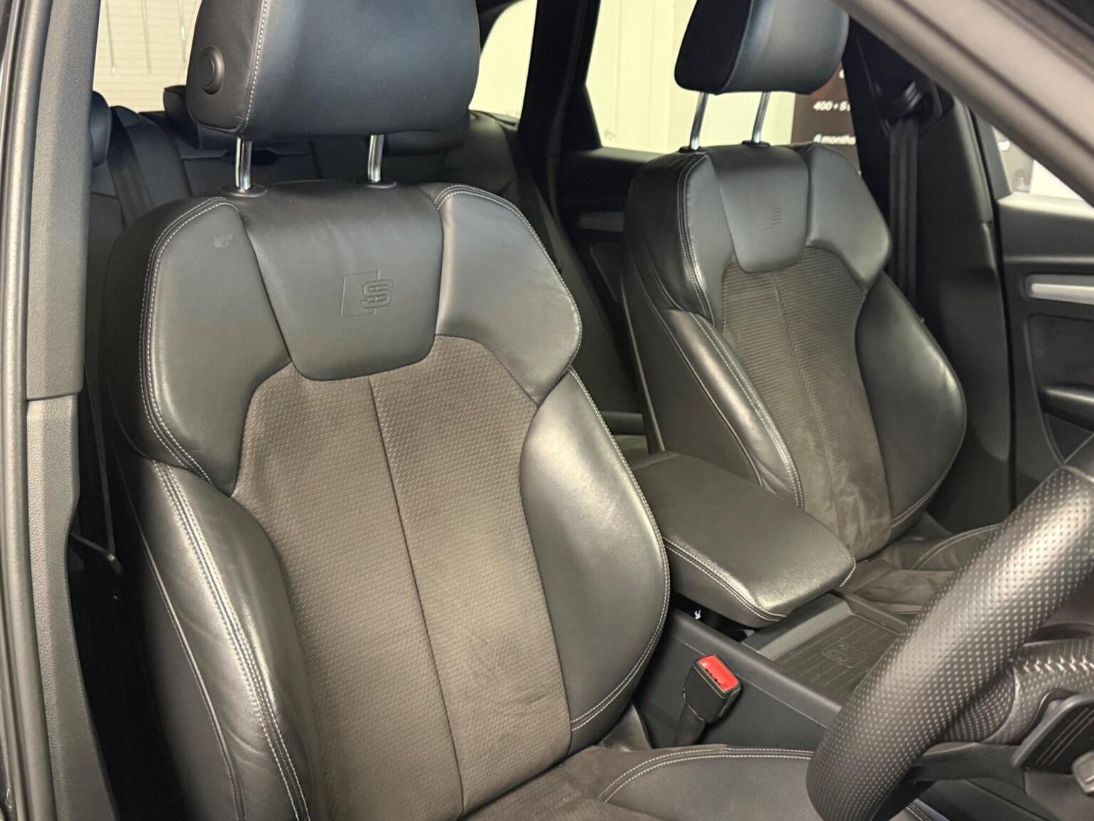 19in Alloy Wheels - 5-Twin-Spoke Star Design - Diamond Cut Finish, 2 x SDXC Card Readers, 2 x USB Charging Ports and 1 x AUX-IN, 4-Way Electric Lumbar Support, 6-Airbag System, Aluminium Roof Rails, Anti Theft Locking Wheel Bolts, Anti-Theft Alarm, Audi Connect Infotainment Services - 3 Month Trial, Audi Connect Safety and Service - e-call, Audi Drive Select, Audi Parking System Plus, Audi Pre-Sense City, Audi Smartphone Interface, Audi Sound System, Auto-Dimming Rear-View Mirror, Automatic Headlight Adjustment, Bluetooth Interface, Body Coloured Door Mirrors, CD Drive, Cloth Headlining in Black, Colour Drivers Information System with 7in Display, Contrast Stitching on Seats - Steering Wheel and Gear Lever Gaiter, Cruise Control with Speed Limiter, DAB Digital Radio, Deluxe 3-Zone Climate Control, Door Mirrors - Electrically Folding and Heated, Dynamic Suspension, ESC - Electronic Stabilisation Control inc ABS - ASR and EDL, Electric Windows - Front and Rear, Electromechanical Parking Brake, Electromechanical Power Steering, Email - Calendar and Text Messages can be Displayed on your Vehicles MMI, First Aid Kit and Warning Triangle, Front Centre Armrest, Front Sports Seats with S Embossed Logo, Front and Rear Floor Mats, Gear Lever Knob in Black Perforated Leather, Headlights - High-Beam Assist, Heated Front Seats, High Multi-function 3-Spoke Leather Steering Wheel with Grips in Perforated Leather and S Badging with Gear-Shift Paddles, High-Gloss Package, Hill Descent Control, Hill Hold Assist, ISOFIX Child Seat Mounting and Top Tether, Illuminated Door Sill Trims with S Logo, Inlays - Matt Brushed Aluminium, Keyless Go, LED Headlights with LED Rear Lights and Dynamic Rear Indicators, LED Interior Lighting Pack, Light and Rain Sensor, MMI Navigation - SD Card Based, MMI Radio Plus with 7in Colour MMI Screen and MMI Controller, Manual Seat Adjustment, Multi Collision Brake Assist, Pedals in Stainless Steel, Pop-Up Bonnet for Pedestrian Protection, Power Operated Tailgate, Privacy Glass with Acoustic Glazing For Front Windows, Radiator Grille in Twilight Grey with Horizontal Matt Aluminium Struts, Rear Diffuser in Body Colour with Matt Aluminium Silver Surrounds, Remote Central Locking, Removable Luggage Compartment Floor, Removable Net Partition, S Line Badges on the Front Wing Panels, S Line Front and Rear Bumpers, S Line Roof Spoiler, S Line Side Skirts, Seat Belt Monitoring, Side and Rear Windows in Heat-Insulating Glass, Split Folding Rear Seat Bench - 40-20-40 with Rear Seat Armrest, Stainless Steel Loading Sill Protector, Sun Visors - with Vanity Mirror, Tool Kit, Tow Bar Preparation, Tyre Pressure Warning Light, Tyre Repair Kit, Underbody Protection in Body Colour, Voice Control System, Windscreen with Acoustic Glass, quattro On Demand
