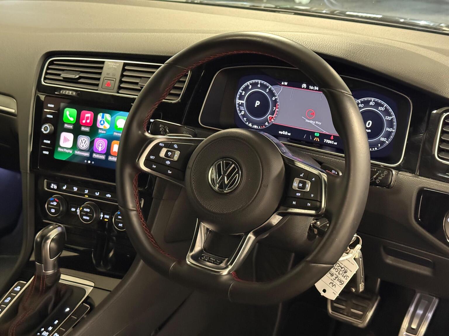 12V Socket - Luggage Compartment, 18in Alloy Wheels - Parker, ABS - Anti-Lock Braking System with HBA - Hydraulic Brake Assist, Active Info Display, Adaptive Cruise Control, Airbags, Alarm with Interior Protection, Ambient Lighting, Ambient Lighting Pack, Anti-Tramp Function, Automatic Coming-Leaving Home Lighting Function, Automatic Post-Collision Braking System, Bag Hooks in the Luggage Compartment x2, Black Rooflining, Body Coloured Bumpers, Body Coloured Door Handles, Body-Coloured Door Mirrors with Integrated Indicators, Brake Calipers - Red with GTI Logo, Brake Pad Wear Indicator, Car-Net App Connect, Car-Net Security and Service including eCall, Carpet Mats - Front and Rear, Child Security Locks in the Rear Doors, Chrome Plated Air Vent Surrounds, Chrome Plated Electric Mirror Adjustment Switch Surround, Chrome Plated Electric Window Button Surrounds, Chrome Trimmed Front Air Intake Surround, Chrome-Plated Light Switch Surround, Climate Control, Composition Media System, Convenience Pack, Cover for Storage Compartment in Centre Console, Cup Holders - Front x2, Discover Navigation Touch-Screen Navigation-Radio System with Car-Net Guide and Inform, Driver Alert System, Driver Personalisation Profile, Drivers and Passengers Safety Optimised Head Restraints, Driving Mode Selection, Dusk Sensor - Automatic Driving Lights, Dust and Pollen Filter, ESC - Electronic Stability Control including EDL - Electronic Differential Lock and ASR - Traction Control with Deactivation via Infotainment System, Easy Entry Sliding Seats, Electric Windows - Front, Electronic Engine Immobiliser, Electronic Parking Brake with Auto Hold Function, Extended Sill Strips - Flared, Front Assist, Front Centre Armrest with Storage Compartment and Two Rear Air Vents, Front Fog Lights - LED, Front Footwell Illumination, Front Seat Back Storage Pockets, Front Sport Seats with Height and Lumbar Adjustment, GTI Sports Suspension - Lowered, GTI Styling Pack, Galvanised Body, Glovebox - Cooled, Grab Handles - Front x2 Rear x2 with Coat Hooks, Headlight Washers, Heated Front Seats, Heated Rear Windscreen, Heated Windscreen Washer Jets, Height-Adjustable Front Three-Point Seat Belts with Tensioners, High Level 3rd Brake Light Incorporating LED Technology, Honeycomb Black Decorative Inserts in Dash and Door Panels, Honeycomb Radiator Grille with Red Stripe, ISOFIX Child Seat Preparation for 2 Rear Seats, Illuminated Door Sill Protectors, Instrument Lighting - White Adjustable Panel Illumination, Interior Light Delay, LED Headlights with Dynamic Curve Light, LED Headlights with Dynamic Light Assist, LED Tinted Rear Light Clusters, Lane Assist inc. Traffic Sign Recognition in Conjunction with Dynamic Light Assist, Lights on Warning Buzzer, Load Lashing Points x4 in Luggage Compartment, Load-Through Provision, Low Washer Fluid Warning Light, Luggage Compartment Cover - Stowable, Luggage Compartment Light, Luggage Compartment Storage Area on Left and Right, Lumbar Support for Drivers and Front Passenger Seat, Mechanical Limited Slip Differential, Mirror Pack, Multifunction Computer, Parking Sensors - Front and Rear, Piano Black Decorative Inserts in Centre Console, Pre-Crash Preventive Occupant Protection, Predictive Pedestrian Protection, Premium USB Cable, Progressive Steering, Rain Sensor and Automatic Dimming Rear-View Mirror, Reading Lights Front x2 and Rear x2 - LED, Rear Centre Armrest - Folding with Cup Holders x2, Rear Diffuser in Black with Chrome Exhaust Tailpipes Left and Right, Rear Lights Incorporating LED Technology, Rear Number Plate Lights Incorporating LED Technology, Rear Screen Wash-Wipe with Intermittent Wipe, Rear Tinted Glass - B Pillar Backwards - Approx 65 Percent Tinted, Rear View Camera, Rear Window Aerial, Reflectors in Doors, Remote Central Locking with 2 Remote Folding Keys, Remote Electrically Foldable Door Mirrors - Door Mirror Puddle Lights and Reverse Activated Kerb-View Adjustment on Passengers Door Mirrors, Speedo and Rev Counter - Electronic Odometer - Trip - Service Interval Display - Exterior Temperature Gauge and Fuel Gauge, Split Folding Rear Backrests 60-40, Stainless Steel Pedals - Clutch - Brake and Accelerator, Steel Space Saver Spare Wheel, Steering Column - Height and Reach Adjustable, Steering Wheel - Multifunction - Leather Trimmed with Paddle Shift, Storage Compartment in Centre Console, Storage Compartment in Front Doors, Storage Compartment in Rear Doors, Storage Compartment in Roof Console with Cover, Tailgate with Integrated Rear Roof Spoiler, Three Rear 3-Point Seat Belts, Three Rear Head Restraints, Tyre Pressure Loss Indicator, Unique GTI Badging - Front and Rear Red, Unique GTI Instrument Cluster, Vanity Mirrors - Illuminated, Variable Boot Floor - Height Adjustable and Removable, Warning Buzzer and Light for Front Seat Belts if Unfastened, Windscreen Wiper with Intermittent Wipe and 4 Position Delay, Winter Pack, XDS Electronic Differential Lock for Improved Traction and Handling